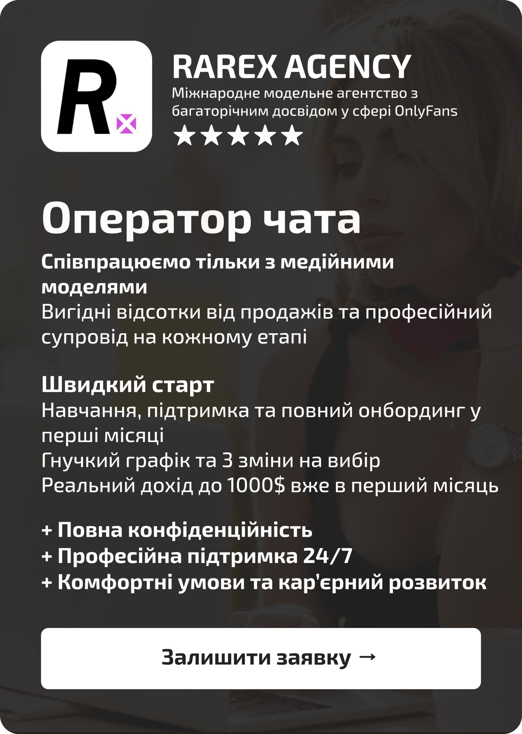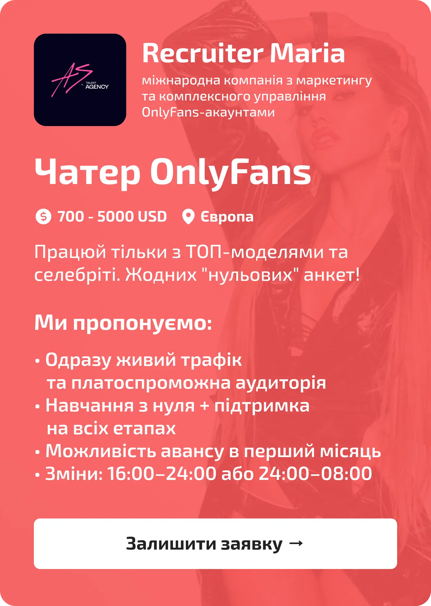 Чатер Onlyfans ТОП OnlyFans, Оператор чата, Чатери Европа 01.02.2026 $500 8 годин в день Віддалено ★ Premium
